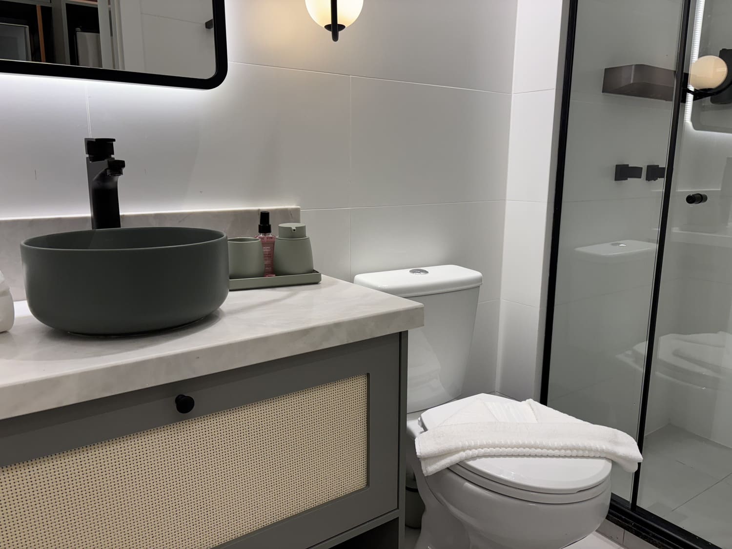 Não deixe que a metragem limitada do seu banheiro defina o seu conforto. Com planejamento inteligente, é possível ter armazenamento de sobra, ergonomia e um design de capa de revista.