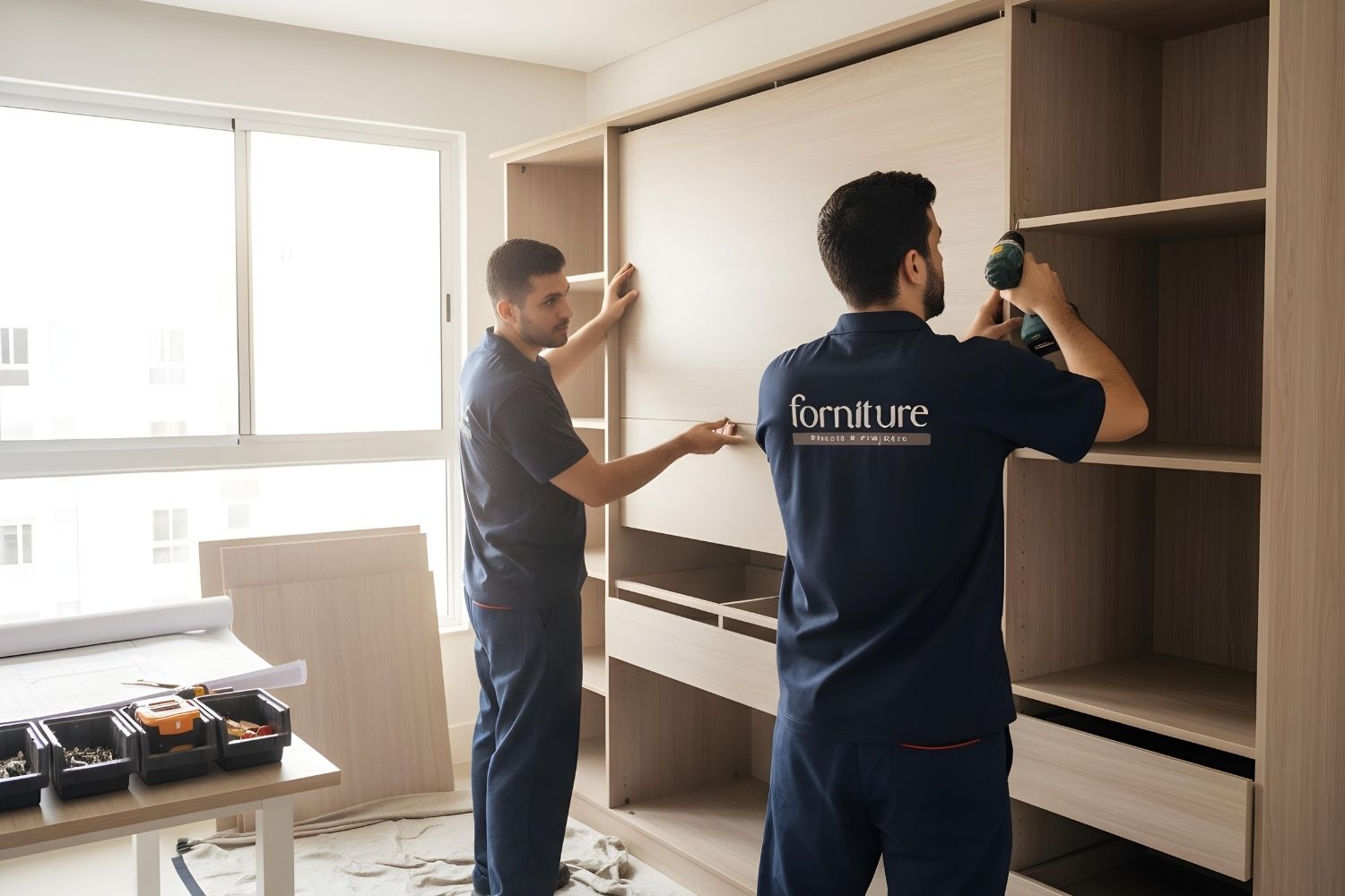 - Equipa própria e especializada: Na Forniture, não terceirizamos a montagem. A nossa equipa de montadores é altamente qualificada e conhece cada detalhe dos nossos projetos. Isso garante um acabamento impecável, cuidado com o seu lar e o cumprimento dos prazos.